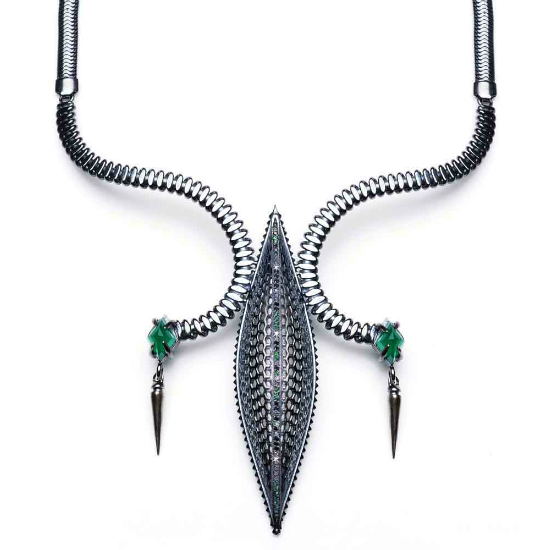 This collection, Isis, draws inspiration from some of the same places as my first collection (ancient Egypt, Samurais, architecture), and has new elements of protection, nature, and animals. I like the concept that jewelry, often times with animal motifs, is meant to be an amulet that protects the wearer. Visually, I wanted to approach animal jewelry in a way that's my own. I love 70's costume jewelry, and wanted to push the collection in a direction that's dramatic and powerful. This also ties back into the name Isis, as her headdress was a throne, a representation of power.